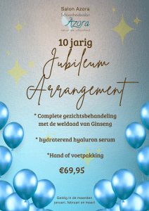 Omdat Salon Azora 10 jaar bestaat is er een mooi jubileumarrangement samengesteld met de weldaad van Ginseng.